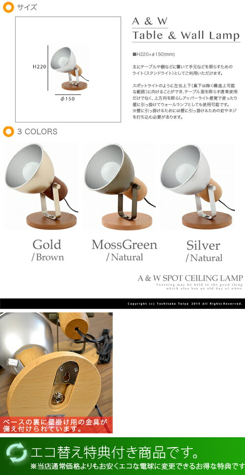 商品名: 品番: メーカー 【ALUMI & WOOD TABLE&WALL LAMP】 ■美しいアルミの質感と木目の入ったウッドを巧みに使ったテーブル&ウォールの2wayランプ ※ご選択頂く付属電球により金額変更となるお客様は修正した価格にて当店より受付メールをお送りいたします。